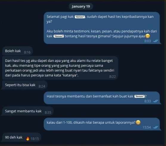Saya kaget dengan tingkat akurasi yang ditawarkan, terutama dalam mengungkap aspek hubungan sosial dan cara saya dalam menghadapi ketakutan serta strategi pertahanan diri.