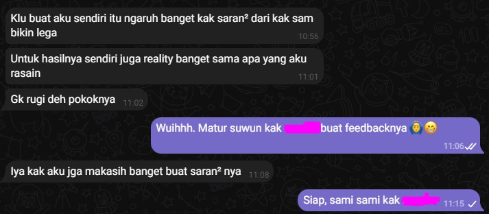 Lewat hasil analisis ini, saya dapet banyak wawasan baru dan saran yang sangat berguna. Ini membantu saya untuk melihat sisi-sisi yang sebelumnya tidak saya sadari, dan ini membuka peluang untuk berkembang dan menjadi versi terbaik dari diri saya
